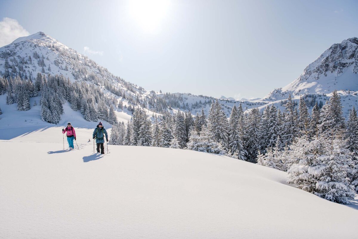 Wer mehr Abenteuer sucht, schnappt sich Schneeschuhe (Schneeschuhwandern im Tannheimertal) oder Tourenski und erkundet die unberührte Natur abseits der Wanderwege. Auch hier habt ihr die Möglichkeit eine*n Lehrer*in oder Guide dazu zu nehmen, um einen einfachen Einstieg in diese Sportarten zu schaffen.