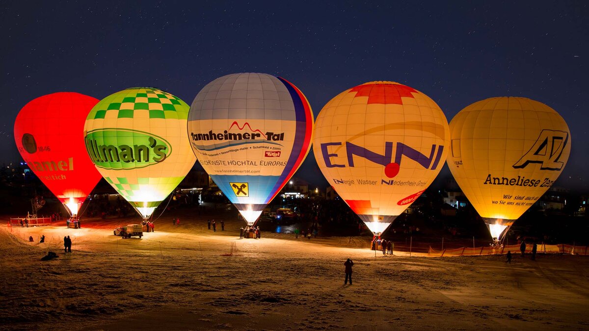 Eines der Winter-Highlights im Tal ist das Ballonfahren! Je nach Wetterlage könnt ihr das ganze Jahr über abheben und die verschneiten Tannheimer Berge von oben genießen.