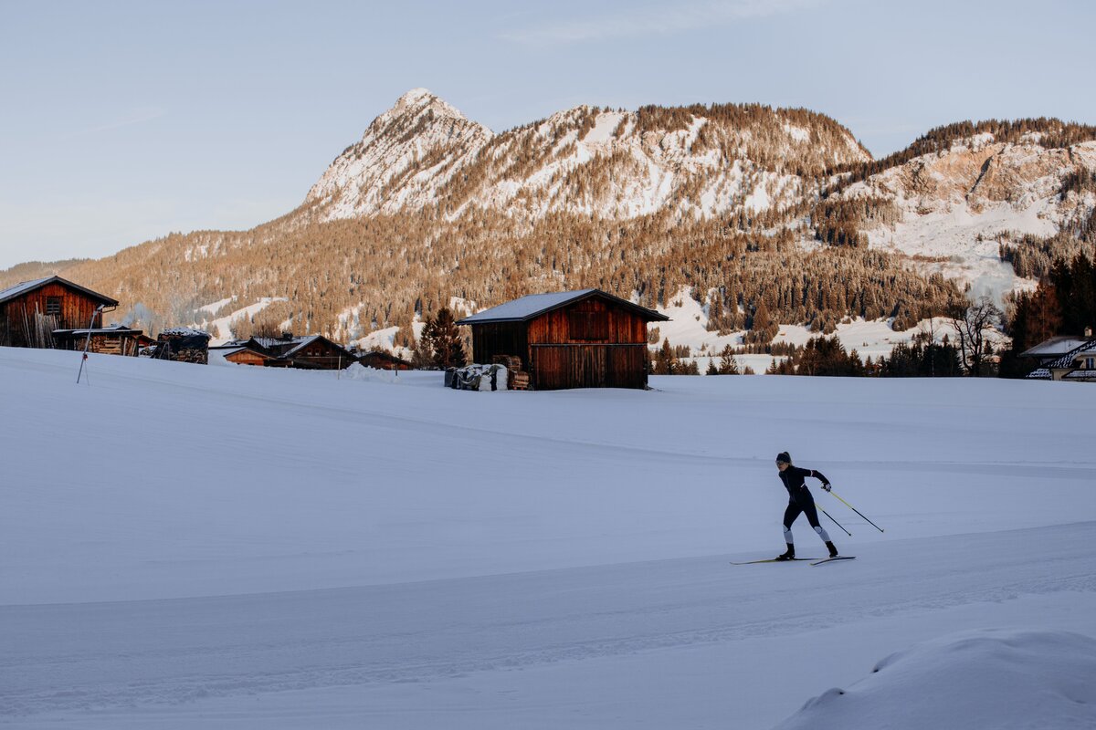 Direkt ab der HAUSferntüre: Mit 140 Kilometern präparierten Loipen haben Langflauffans die Qual der Wahl – von leichten Runden bis zu anspruchsvollen, weiten Strecken. Frühaufstehende drehen ihre ersten Runden schon vor dem Frühstück auf perfekt gespurten Loipen. Wer Lust hat kann seine Loipenfähigkeit mit einem*r Langlauflehrer*in verbessern. Langlaufen im Tannheimertal